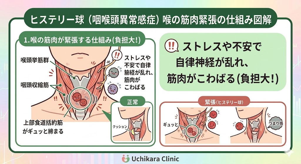 主な原因は、自律神経の乱れによる「喉の筋肉の緊張」です。