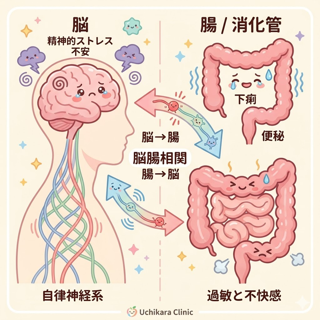 単なる「お腹の弱さ」ではなく、ストレスや自律神経が深く関わっている病気です。