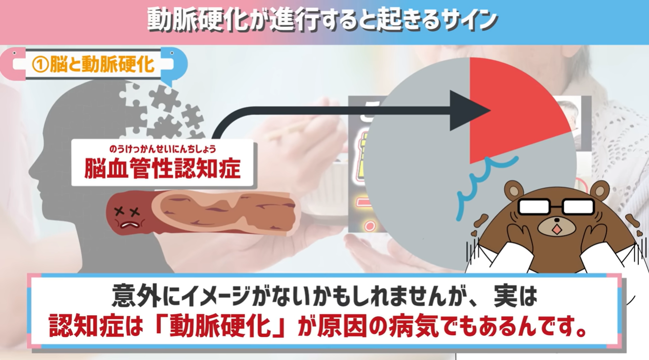さらに、脳の動脈硬化が進行すると、認知症のリスクが上がります。