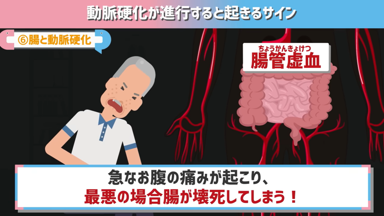 珍しい病気ではあるのですが、腸に血液を送る動脈が狭くなったり、詰まったりしてしまう<腸管虚血>という状態で急なお腹の痛みが起こり、最悪の場合腸が壊死してしまう病気です。