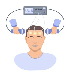 全身麻酔と筋肉けいれんを抑える薬を使用して、脳に数秒間の電気刺激を与える治療法です。