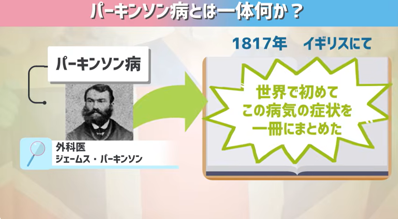 イギリスのJames Parkinsonが、1817年に初めて、この病気の症状を一冊の本にまとめたことから由来しています。