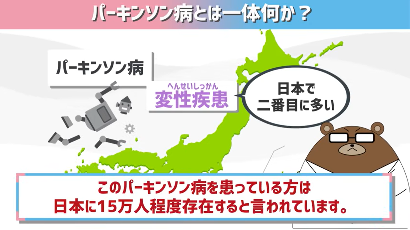 その次に多いのが、このパーキンソン病で日本に15万人程度存在すると言われています。