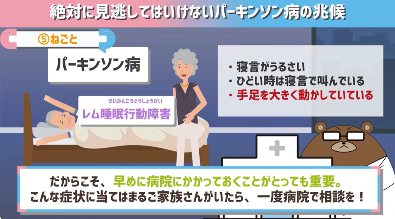そして、実はこのレム睡眠行動障害は、パーキンソン病の「前兆」と言われていて、