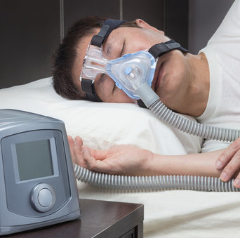 SAS治療の最も標準的で効果的な治療です。 寝るときに鼻にマスクを装着し、機械から一定の圧力をかけた空気を送り込むことで、喉(気道)が塞がるのを防ぎます。