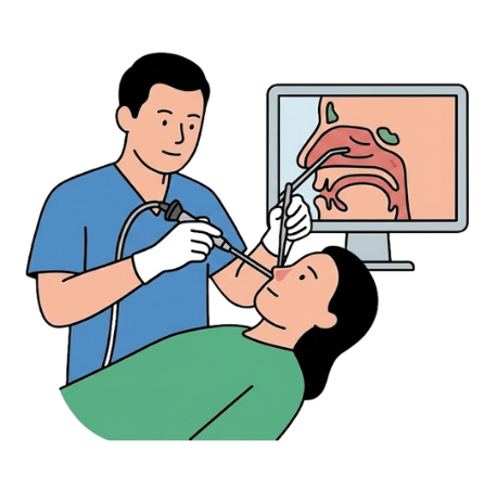 最大の特徴は、顔の皮膚を切開しないことです。 直径数ミリの細い内視鏡(カメラ)を鼻の穴から挿入し、モニターで鼻の中を拡大しながら、専用の器具を使って手術を行います。