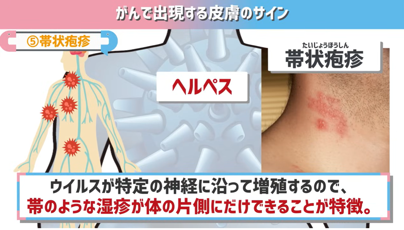 なので、必ずしもがんが原因、という訳ではないんですが、この帯状疱疹を繰り返す場合も要注意。