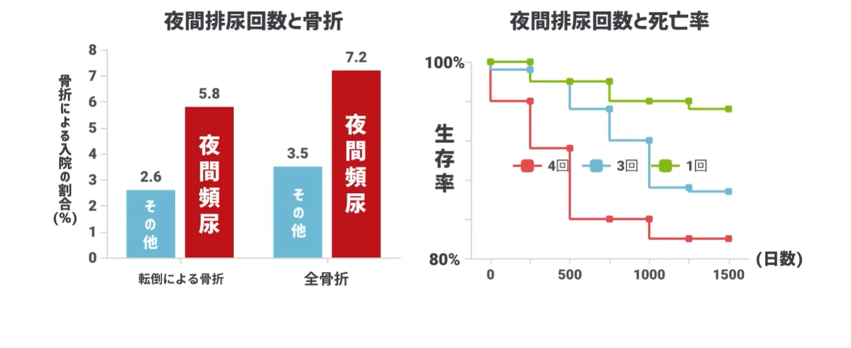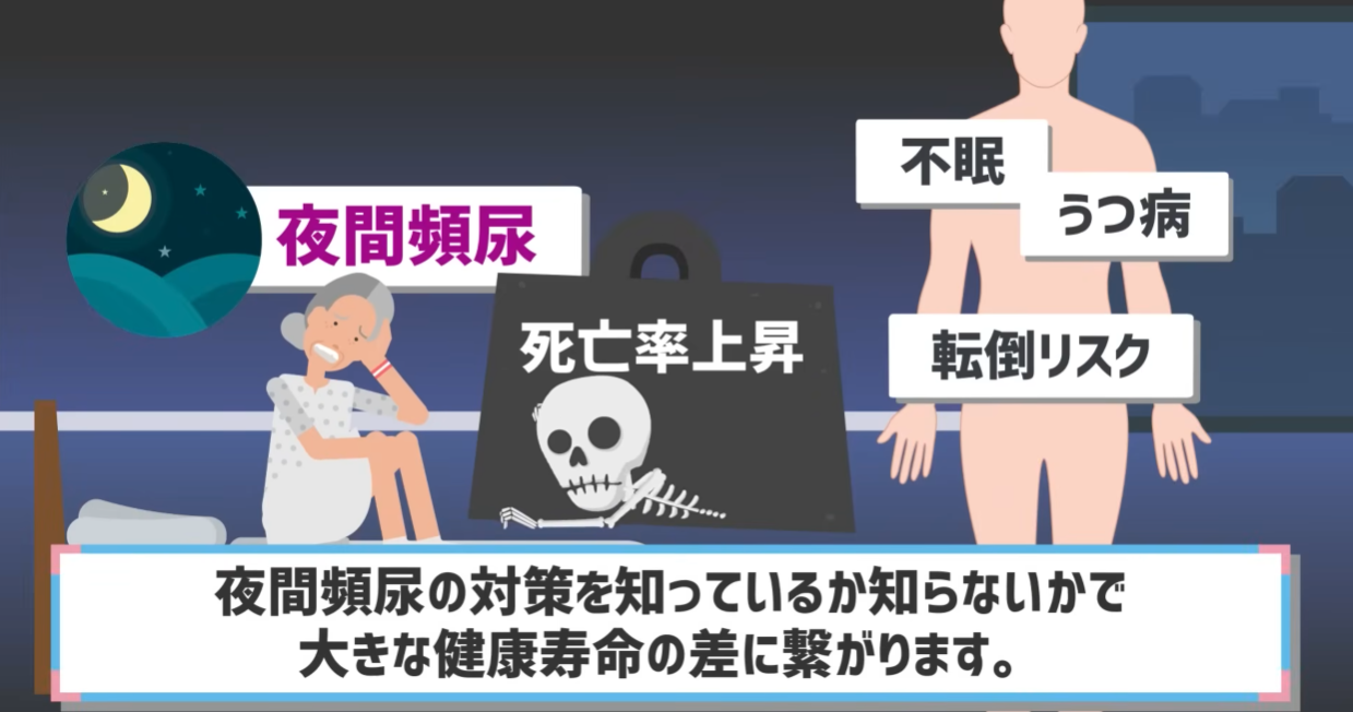 実は、夜間頻尿を放置すると不眠だけでなく、うつ病や転倒、さらには死亡率を上げるリスクがあることもわかっています。