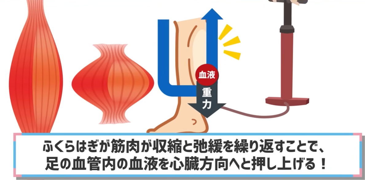 ふくらはぎは、足に溜まった水分を心臓へ押し戻す「ポンプ」の役割を果たしています。