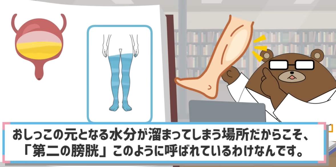 この機能が弱まると足に水分が溜まり、夜横になった時にその水分が尿に変わるため、「第二の膀胱」と呼ばれています。