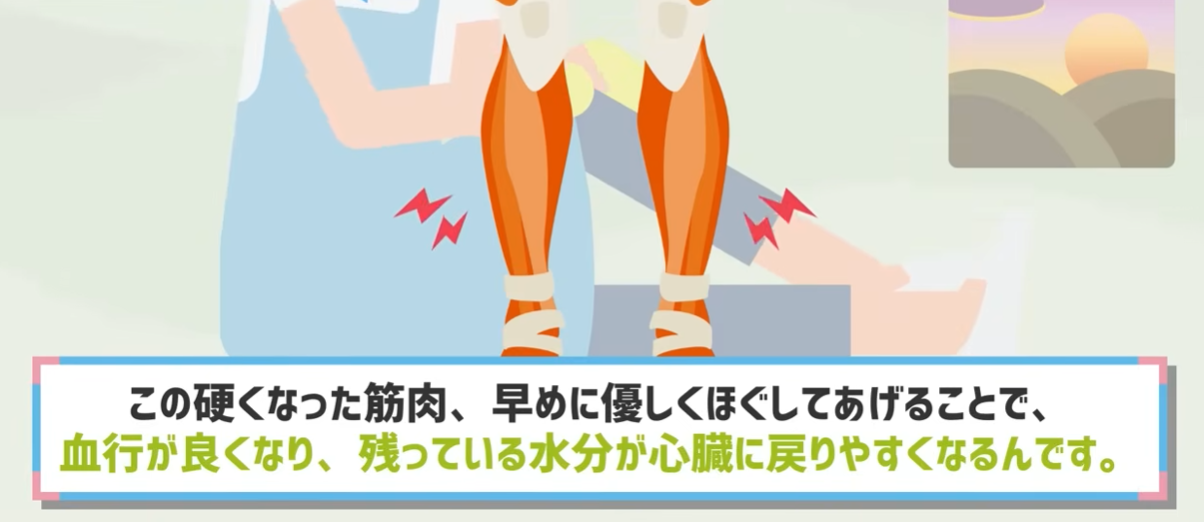 大切なのは、「第二の膀胱」であるふくらはぎに溜まった水分を、いかに夜までに処理するかです。