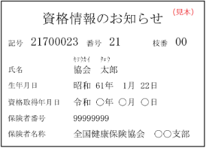 • 「氏名」「生年月日」「保険者番号」などがしっかり書かれています。